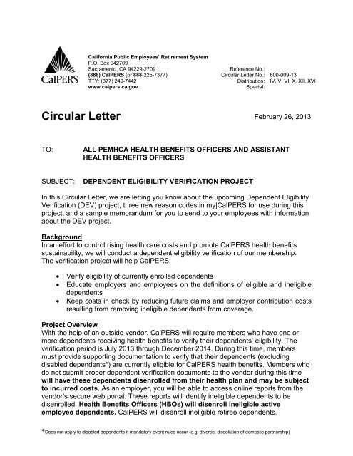 Circular Letter 600 009 13 Dependent Eligibility Verification Project